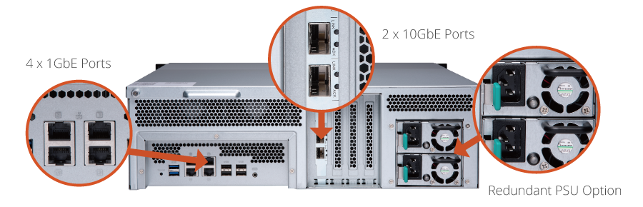 | 10 Gigabit 以太网络端口 | 2 个 10GbE SFP+ 预载一个 10GbE PCIe 网络扩充卡 |