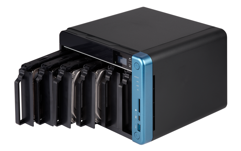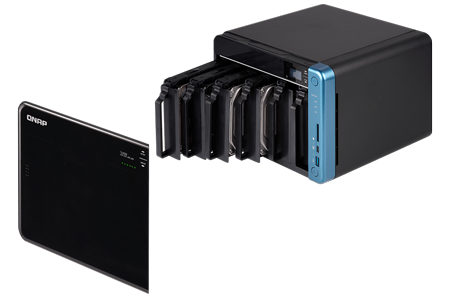 | 硬盘插槽数 | 6 个 3.5 英寸 SATA 6Gb/s、3Gb/s 系统出货不包含硬盘。 如需硬盘兼容性列表,请造访 https://www.qnap.com/compatibility/ |