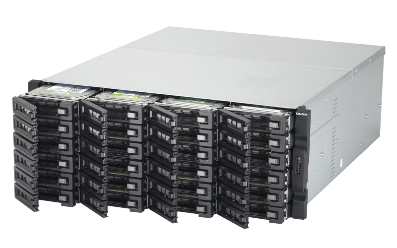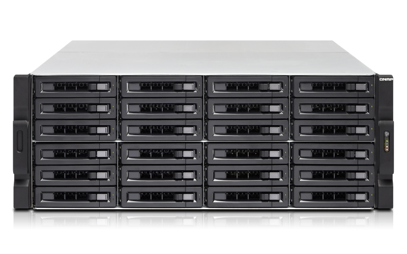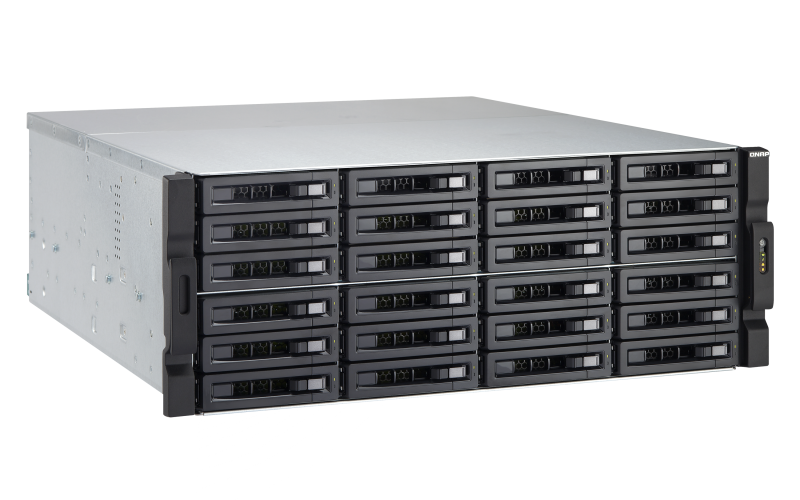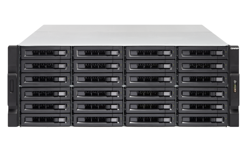 | 硬碟插槽數 | 24 個 3.5 吋 SAS 12Gb/s、6Gb/s 標準系統出貨不包含硬碟。 如需硬碟相容性列表,請造訪 https://www.qnap.com/compatibility/ |