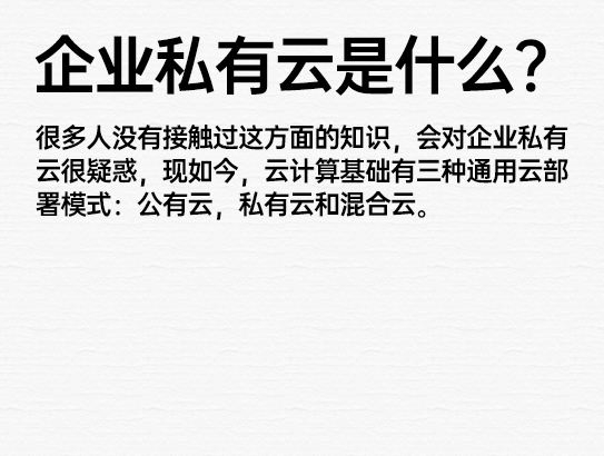 很多人没有接触过这方面的知识,会对企业私有云很疑惑,现如今,云计算基础有三种通用云部署模式:公有云,私有云和混合云。